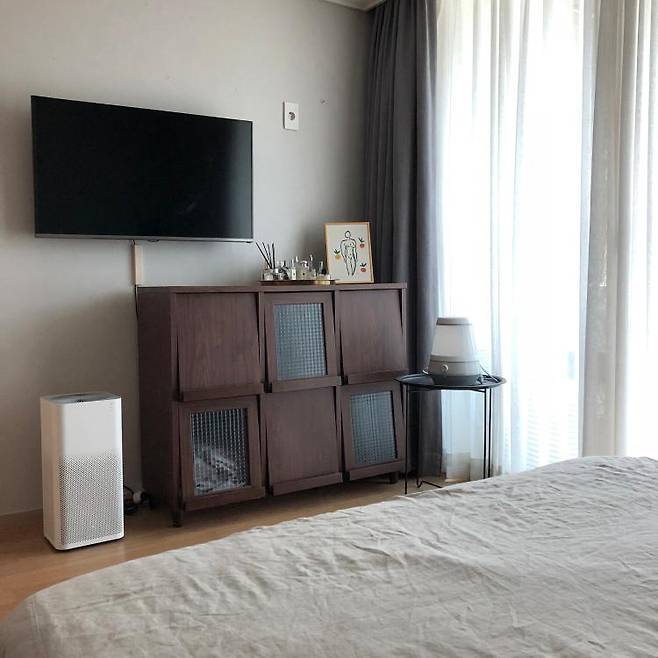 TV는 모두 다 치우려고 하다 거실만 치우고 안방은 남겨두었는데 종종 아기에게 영상물을 보여줄 때 틀곤 합니다.