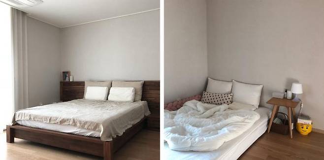 퀸 사이즈의 침대가 이젠 조금 비좁아 싱글형 매트리스를 하나 더 구입해서 붙여서 사용하려고 합니다.
