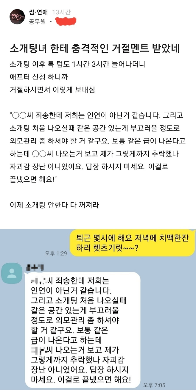소개팅 애프터 신청했다가 충격적인 거절멘트를 받은 남자