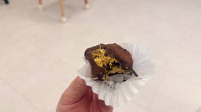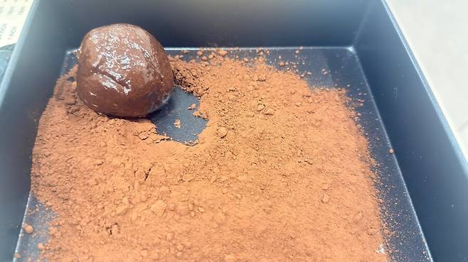 위에 두 개처럼 모든 면에 카카오 파우더가 묻으면 완성