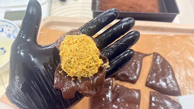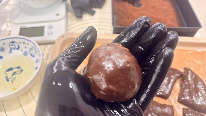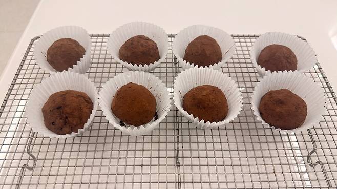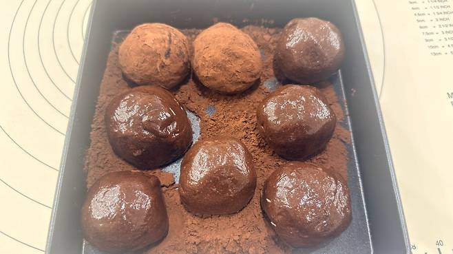 만들어진 건 코코아 파우더를 묻혀서 굴려 줄 거에요.