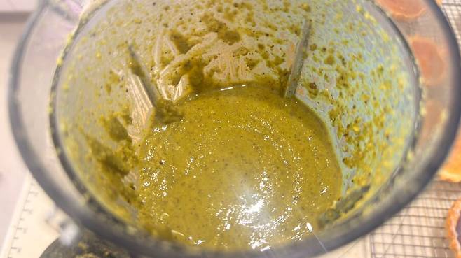 시판하는 피스타치오 스프레드는 다른 첨가물들이 있어서, 피스타치오 원물에 식물성 오일 넣고 갈아줬습니다. 100% 피스타치오 페이스트!!
