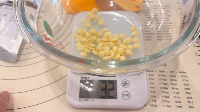 화이트 커버춰 초콜렛을 계량해서, 전자렌지로 녹여 주고요!