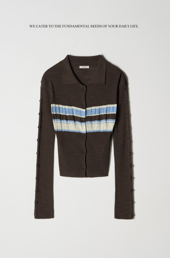 Àvie MUAH의 크링클 스트라이프 가디건은 1사이즈와 2사이즈 두 가지로 발매되었다.