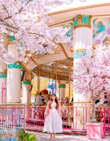 테마파크 내에서는 만개한 벚꽃과 함께 곳곳에는 클래식 카, 2층 버스 등 포토존이 조성되어 있어 벚꽃과 함께 인생 사진을 찍어 남기기 좋으며 늦은 밤 야경까지 아름다워 낮에는 놀이기구와 벚꽃을 밤에는 화려한 야경과 벚꽃까지 즐기기 좋은 대구 벚꽃 명소입니다.