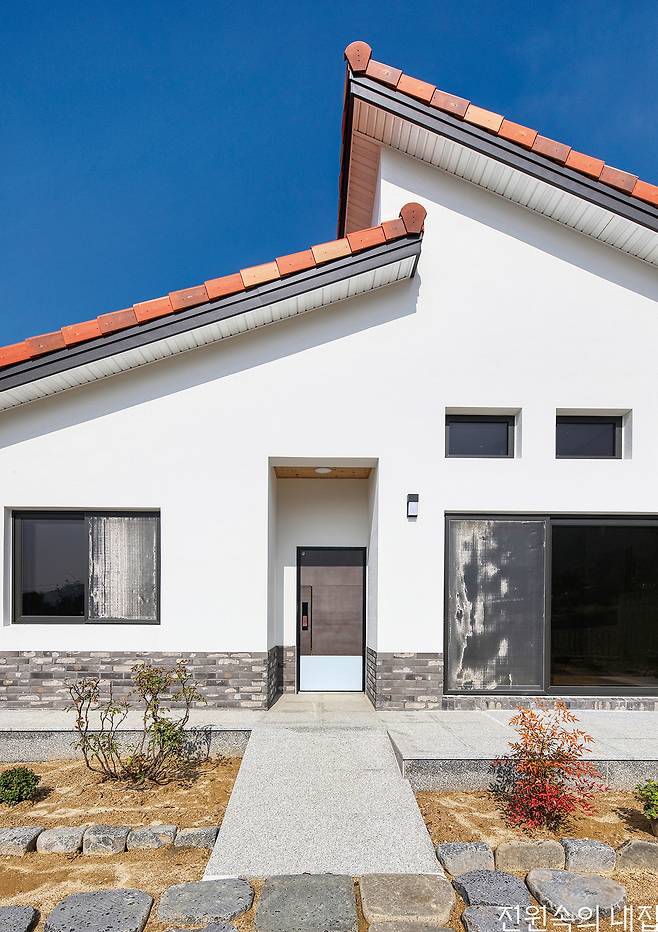 스페니쉬 기와가 얹어진 정갈한 형태와 하부에 둘러진 벽돌 타일로 은은한 존재감을 뽐내는 청주의 한 단독 주택은 간결함과 편안함에 가치를 두고 지어졌다. 길을 향해서는 등을 보이고 멀리 산세만을 향해 눈길을 내어주는 필지는 건축주 최종원 씨의 고민이 더해진 선택이었다. 오랜 기간 청주에 살았기에, 지역에 대한 낯설음은 없었으나 전원 주택용으로 적절한 단지를 찾기가 어려웠다. 그러다 어느 날 우연히 위성 지도를 둘러보던 중, 정돈된 주택지가 있는 것을 보고 바로 달려가 살핀 후 지금의 위치를 계약하게 됐다. 땅을 구한 다음부터는 느리지만 확실하게 계획이 진행됐다. 어떤 재료로 어떻게 짓겠다는 마스터 플랜이 이미 정해져 있었기 때문이다.