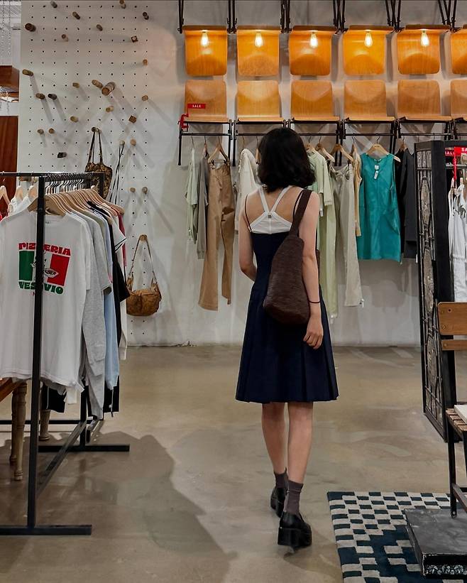 매장 안에서는 차분히 옷을 구경하며 여유로운 시간을 보내는 모습이 포착됐어요.