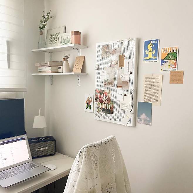 엽서는 쉽게 붙였다 떼었다 할 수 있어 질릴 땐 새로운 엽서를 활용해 다른 분위기를 낼 수 있어요. 같은 엽서를 활용하더라도 어떻게 배치하냐에 따라 새로운 느낌을 준답니다.