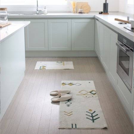 앞서 말했듯 공간 제약이 적어 활용도가 높은 제품인데요. 주방에 배치할 경우, 인테리어 요소뿐만 아니라 바닥의 물기를 쉽게 제거할 수 있어 기능까지 확실하답니다. 특히 밝은 색감의 러그를 활용하신다면 더욱 화사한 집을 만들 수 있어요.