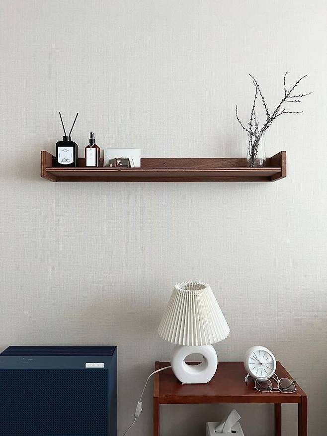 네 번째로 추천드릴 제품은 '벽 선반'입니다. 벽 선반은 감성을 더해줄 뿐만 아니라 수납공간을 확보해 주기에 더욱 추천드립니다. 수납공간은 다다익선인 것 다들 아시죠 ? ㅎㅎ