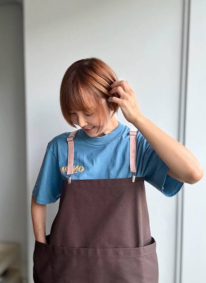 공개한 사진에서 최은경은 블루 컬러의 티셔츠에 브라운 컬러의 앞치마를 착용한 모습과 화이트 컬러에 아이보리 앞치마, 스트라이프 티셔츠에 블루 컬러 앞치마, 블랙 티셔츠에 블랙 스트라이프 앞치마를 착용한 톤온톤 스타일의 홈웨어룩으로 스타일리시한 감각을 한껏 드러냈다.