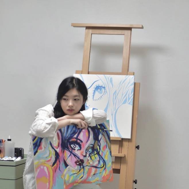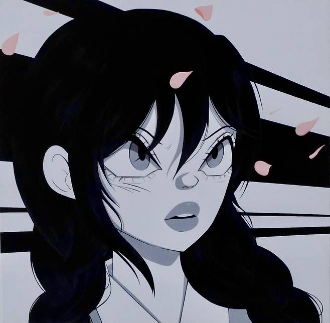 나는 애니메이션과 케이팝에서 발견되는 다양한 여성상을 차용해 단순하고 명쾌한 캐릭터를 디지털 이미지와 회화로 재구성하고 그 흐름을 탐구합니다.