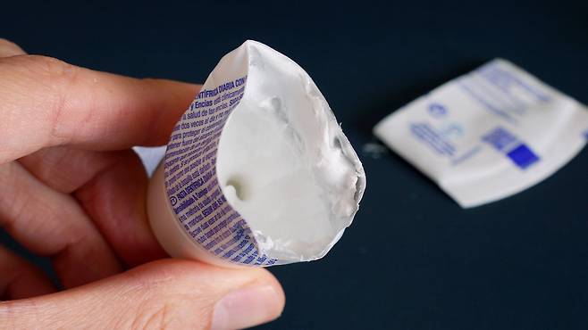 이렇게 자르고 난 치약 속을 봤더니? 아직도 많은 치약이 안에 있는 것을 볼 수 있는데요. 아무리 꼭 짜서 사용했더라도 이렇게나 많은 양이 있답니다. 그래서 버리지 않고 잘라 사용하는 것이 중요해요.