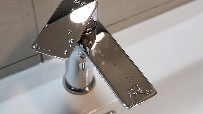 다음은 수도꼭지를 닦아 볼 차례인데요. 이때는 입구 부분의 튜브를 이용하는 것이 좋아요. 이곳에는 아주 많은 양이 뭉쳐 있답니다.
