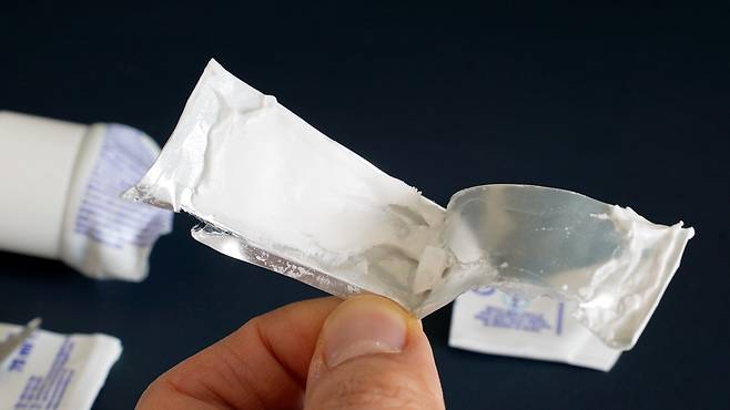이렇게 자르고 난 치약 속을 봤더니? 아직도 많은 치약이 안에 있는 것을 볼 수 있는데요. 아무리 꼭 짜서 사용했더라도 이렇게나 많은 양이 있답니다. 그래서 버리지 않고 잘라 사용하는 것이 중요해요.