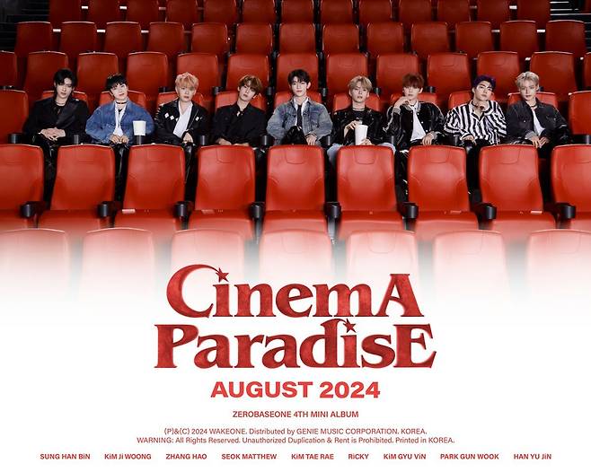 30일 소속사 웨이크원에 따르면 제로베이스원은 8월에 미니 4집 '시네마 파라다이스'(CINEMA PARADISE)를 발매한다.