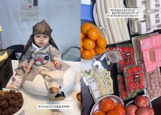 정주리는 29일 "12월 29일 어느새 막내 도준이의 첫돌을 맞이하게 되었어요. 가족들과 소박하게 진행하게 되어 따로 인사를 드리지 못했습니다. 마음으로 함께해 주신 모든 분들께 감사 인사 전하며 앞으로도 도준이 포함 오형제!! 반짝반짝 잘 키워나가겠습니다! 다시 한번 감사드립니다"라는 소감과 함께 사진을 게재했다.