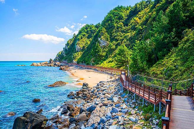바로 앞 바다를 감상하며 가볍게 걸을 수 있어 연인들과 낭만적인 데이트코스로도 제격입니다. 끝은 울창한 숲길로 마무리할 수 있어 푸른 바다와 초록빛 자연을 모두 아우르며 산책할 수 있습니다.