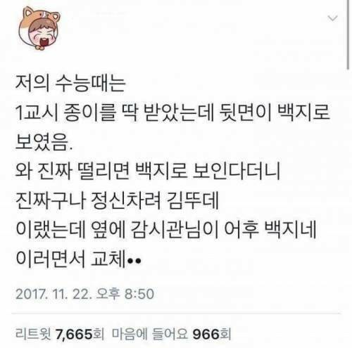 백지 시험지 일화..ㅋㅋㅋ