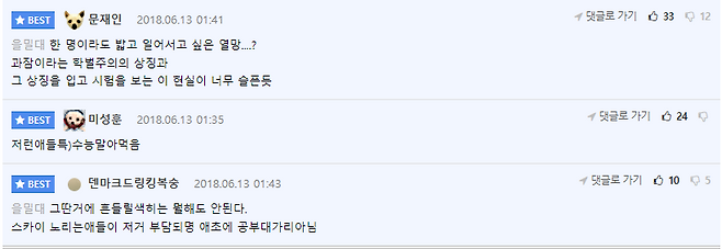 명문대 과잠을 입고 수능을 보는 것이