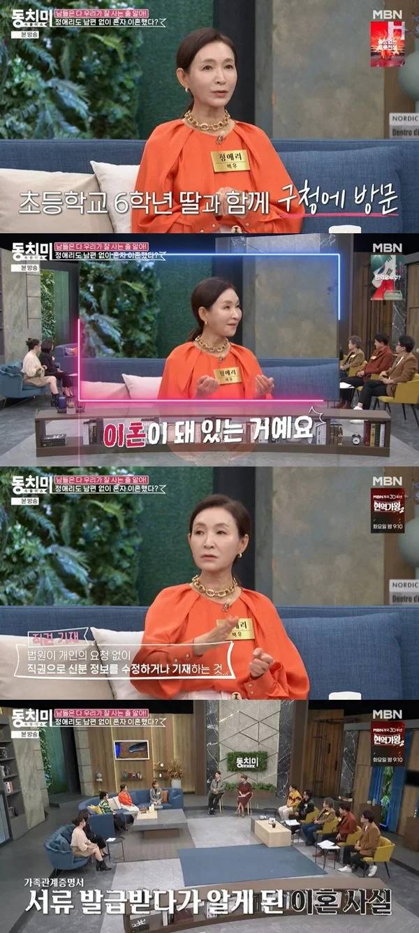 학교에 제출할 서류를 떼러 구청에 들른 정애리는 그제야 자신이 이미 이혼된 상태라는 걸 알게 됐다.