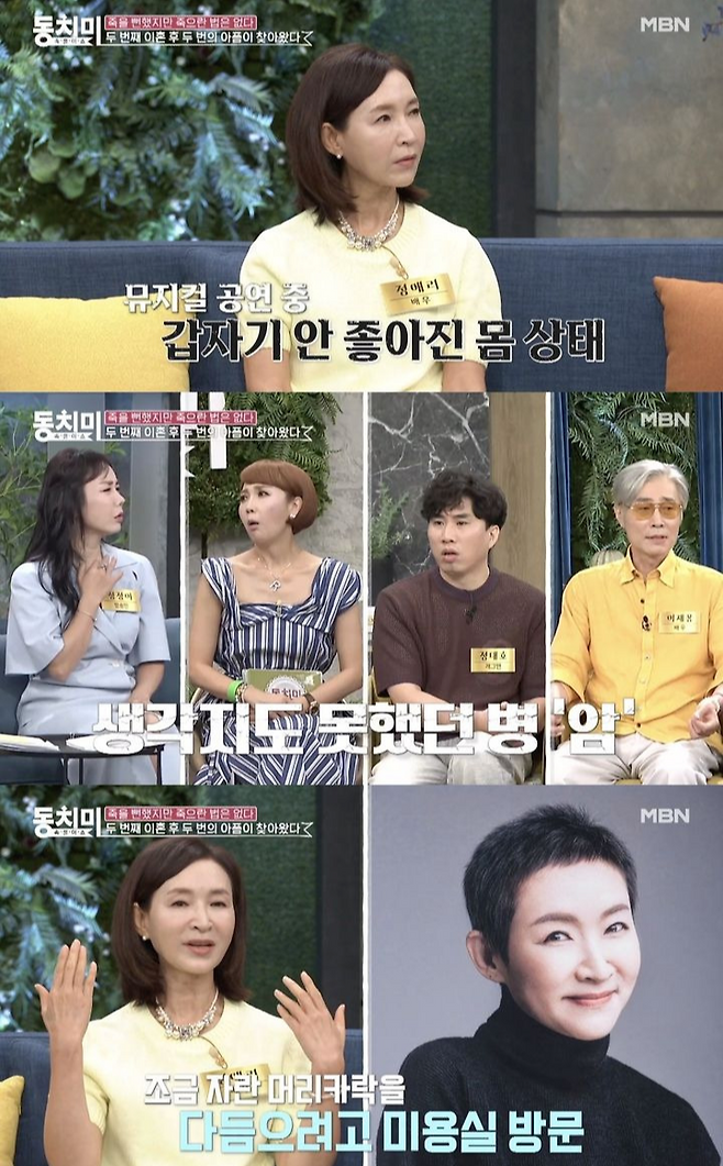 머리카락은 항암치료로 빠져나갔고, 정애리는 미용사를 불러 스스로 머리를 밀었다.