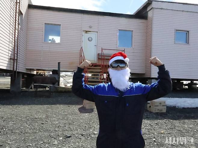 이때 검은색 운동복을 입은 월동대원 한 명이 눈에 띄었다. 하계대 안전 및 활동 지원을 위해동행한 우재호 월동대원이었다.
