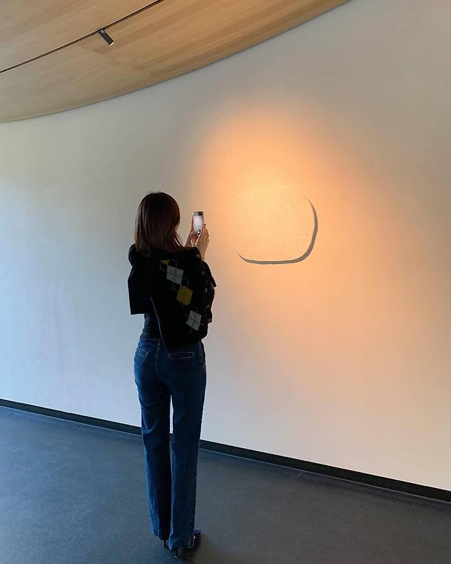 조용한 갤러리에서 그림을 바라보는 모습이 너무 편안해 보였어요.