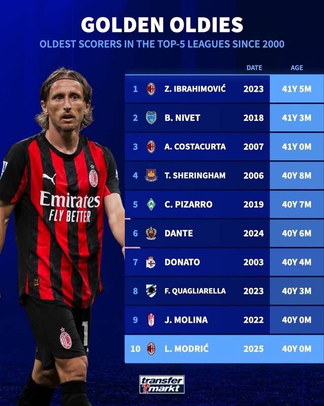 9월 9일에 40번째 생일을 보낸 모드리치는 40세의 나이로 골을 기록했다.