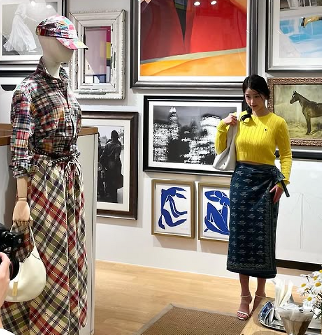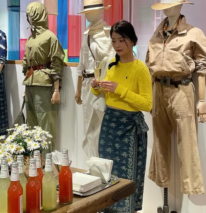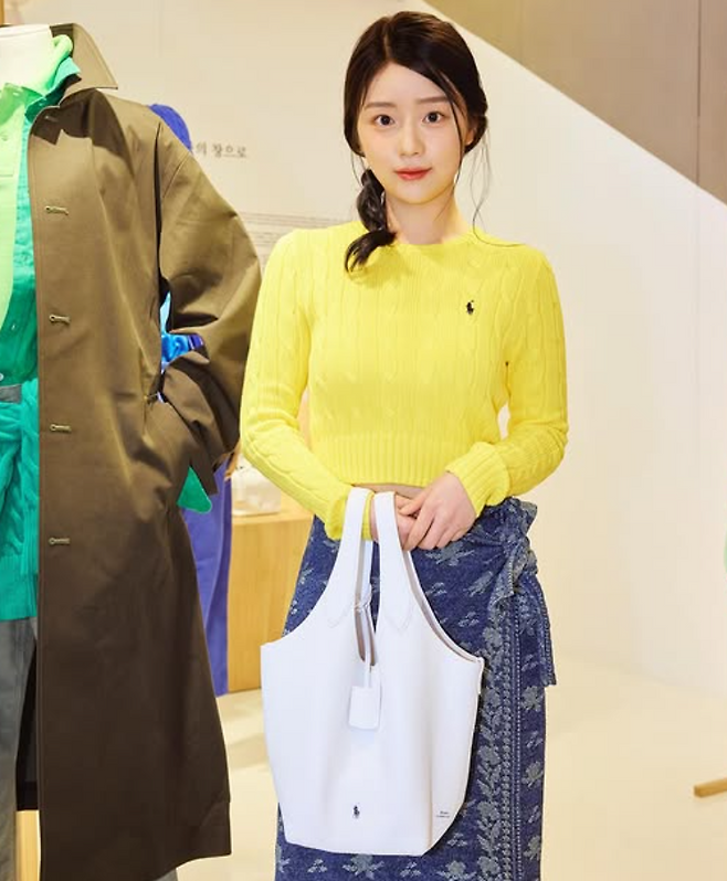 이번 스타일의 중심은 단연 채서안 님이 착용한 개나리빛 노란 니트였어요. 밝고 생기 넘치는 컬러감으로 봄을 온전히 표현해 주었죠. 폴로 랄프로렌 특유의 클래식한 무드가 살아있는 디자인으로, 심플하지만 고급스러운 느낌까지 함께 담겨 있었답니다.