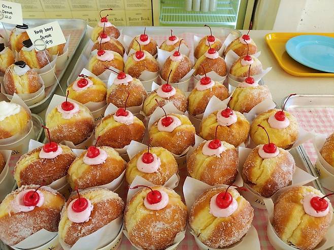 노오란 뾰족지붕 건물에 'Butter Book'이라는 영문이 '똭!' 이 그림 앞에서 사진 안 찍고 지나갈 이 몇이나 되랴. 게다가 도넛 굽는 맛있는 냄새까지 스멀스멀 새어 나온다. 이태원 해방촌 도넛 맛집 버터북을 행궁동 행리단길에서도 만날 수 있게 됐는데 버터 같은 노란 색감의 외관 덕분에 벌써 인생 사진 명소로 등극했다. 크림을 가득 채운 예쁜 도넛 역시 입이 가기 전에 먼저 카메라에 양보한다. 찰칵찰칵, 분주히 사진을 찍은 후 도넛과 함께 달콤한 휴식!