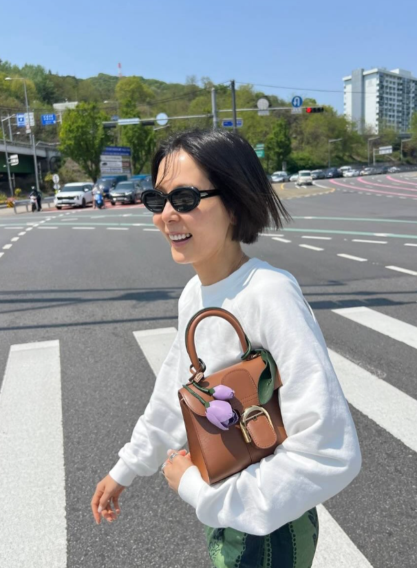 부드러운 터치감과 심플한 디자인으로 데일리룩에 제격인 이 스웻셔츠가 김나영의 스타일을 더욱 빛나게 했다.