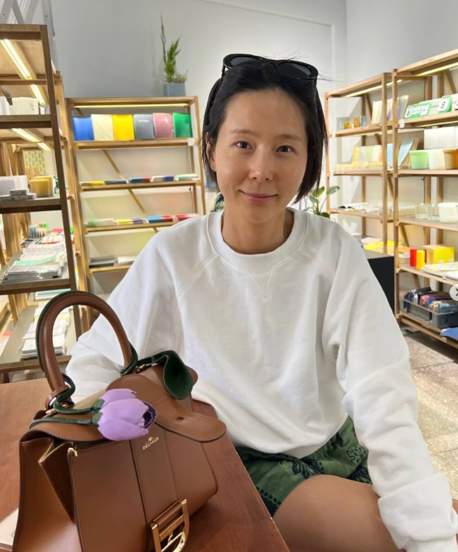 깔끔하면서도 트렌디한 스타일로 주목받은 이 룩의 핵심 아이템은 VET WOMAN의 "Cutting Line Sweatshirts, Ivory"이다.