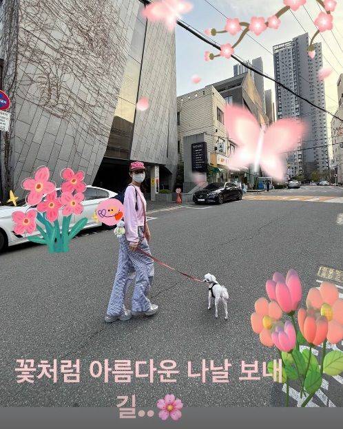 사진 속 그는 캐주얼하면서도 세련된 핑크빛 맨투맨에 와이드 팬츠와 모자를 매치해 ‘힙한 엄마’의 모습을 보여주었으며, 반려견과 함께 강남의 거리에서 여유로운 산책을 즐기고 있는 모습이 눈길을 끌었습니다.