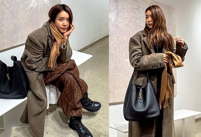 또한, 블랙 워커와 생로랑의 빅 사이즈 호보백으로 스타일링을 완성하며, 트렌디하면서도 실용적인 겨울 코디를 선보였습니다.