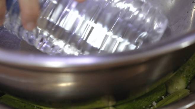 절인 오이는 물에 한번 씻고 소쿠리에서 40분 정도 물기를 빼세요. 그래야 더욱 아삭아삭 맛있답니다.