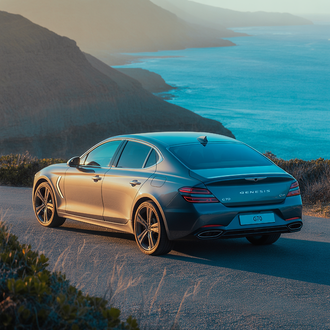 외관: LED 헤드램프 및 테일램프, 18인치 알로이 휠 등 제네시스 고유의 디자인 요소가 적용되어 고급스러운 외관을 완성합니다.