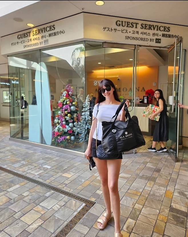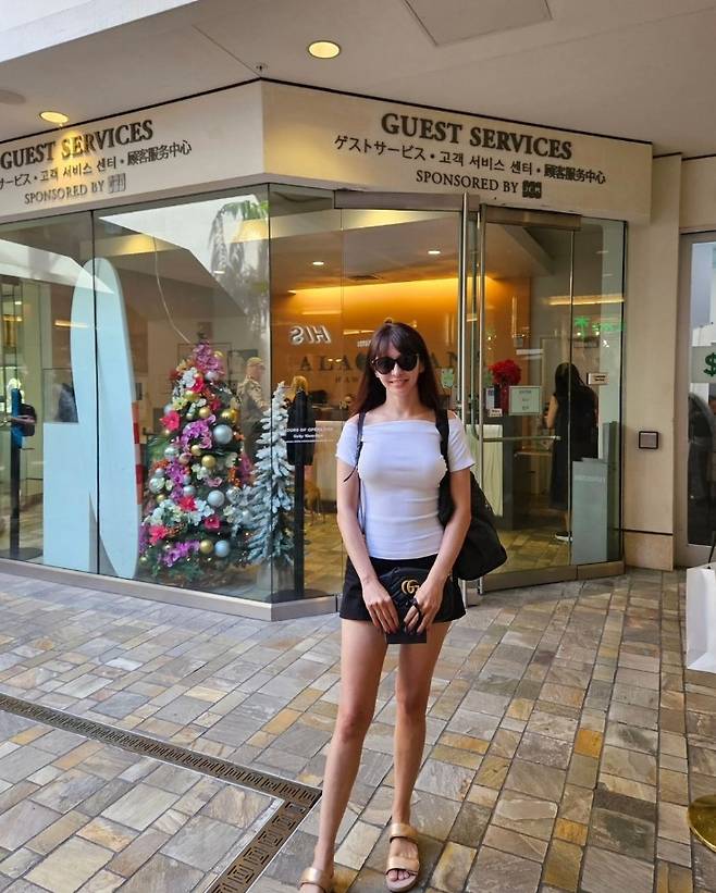 구잘은 오프숄더 화이트 톱과 블랙 쇼츠를 매치해 심플하면서도 시크한 조합을 선보였습니다.