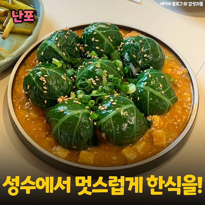난포는 강된장쌈밥으로 유명해진 맛집인데요. 성수에서 한식을 멋스럽게, 한식의 새로움을 발견할 수 있는 곳이에요~