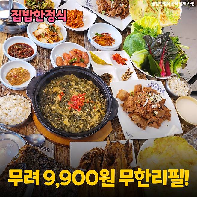 만원 한 장으로 쌈밥정식을 무한으로 먹을 수 있는 집밥한정식! 전라도식 15첩 반상 쌈밥정식을 9,900원으로 먹을 수 있으니 그야말로 '갓'성비 쌈밥맛집인데요.
