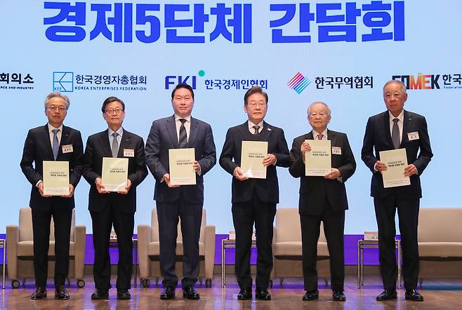 한편 이재명 당선인은 선거운동 기간 경제계와의 소통을 강화해왔다. 5월에는 대한상공회의소, 한국경영자총협회, 한국경제인협회, 한국무역협회, 한국중견기업연합회 등 경제 5단체가 주최한 간담회에 참석해 경제 활성화를 위한 의견을 청취하고 정책 방향을 공유했다.