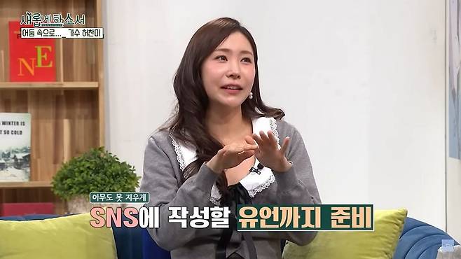 그러면서 “포털사이트에 제 이름을 검색하면 연관 검색어에 ‘허찬미 인성’이 떴다. 많은 사람들이 이 모습을 보고 저를 그렇게 바라본다는 생각이 드니까 밖을 못 나가겠더라”라며 “악플이 많이 달린 수준이 아니다. ‘허찬미 TV에서 꼴 보기 싫다’고 하고, 개인 채널 쪽지로도 ‘밤길 조심해라. 만나면 너 죽일 거다’ 이런 글이 왔다”라고 말해 안타까움을 안겼다. 이를 들은 주영훈은 “잘 버텨 줘서 고맙다”라며 위로를 건네 시선을 모았다.