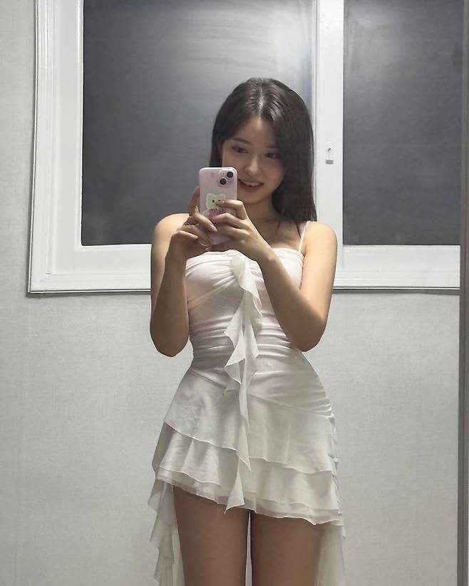 이어진 룩에서는 러플 디테일이 돋보이는 화이트 드레스를 착용했다. 얇은 스트랩과 비대칭 헴라인은 로맨틱한 분위기를 강조하며, 그녀의 맑은 미소와 어우러져 무대를 방불케 하는 비주얼을 완성했다. 해당 게시물은 팬들 사이에서도 “요정 같다”는 반응을 불러일으켰다.