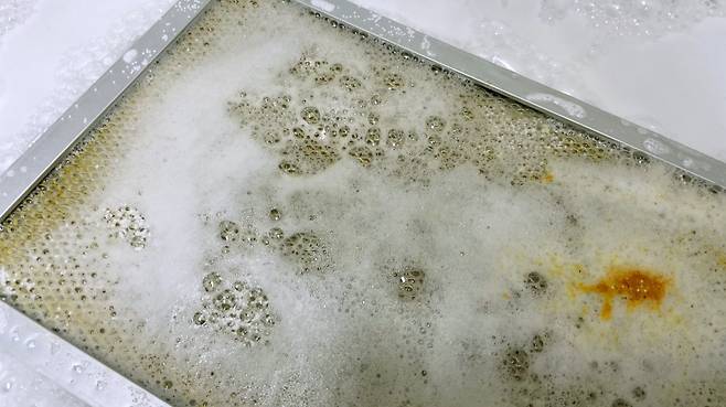 잠시 후 확인해 보면 눈으로 딱 봐도 엄청 깨끗해진 것이 보이실 텐데요. 흐르는 물에 깨끗이 헹궈주시면 끝!