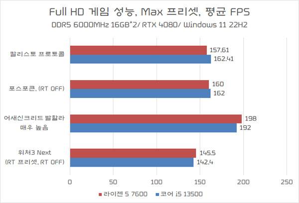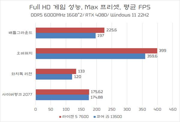 Full HD 게임 성능, 전반적으로 라이젠 5 7600 우세