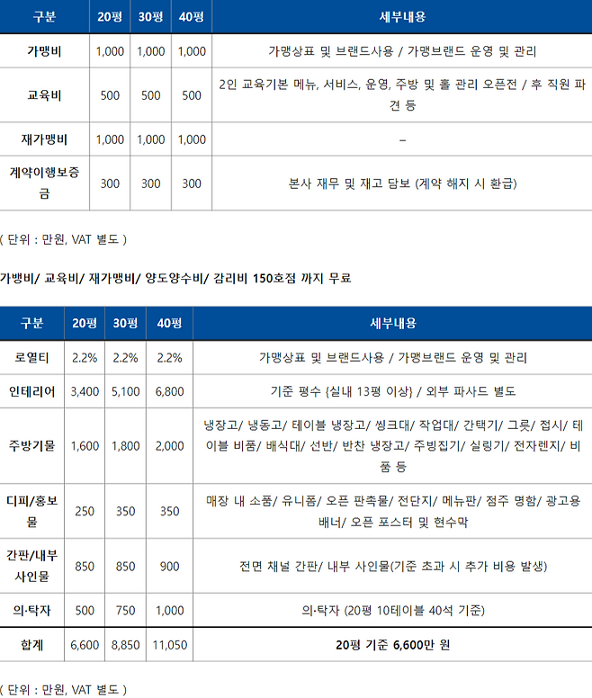 - *20평 미만 매장 창업 시 추가 금액 발생