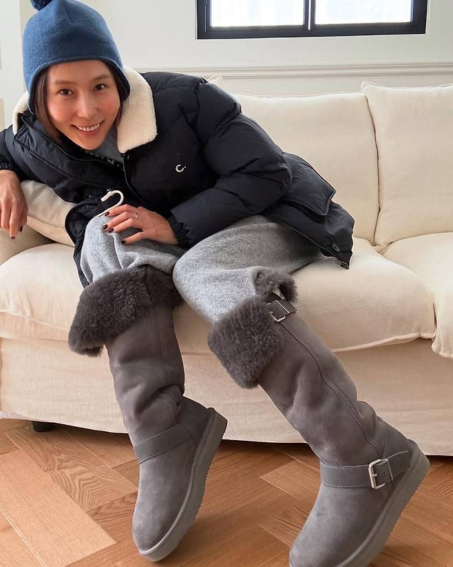 3. 무릎 절대 지켜! 무릎까지 올라오는 그레이 시어링 부츠🐑🩶