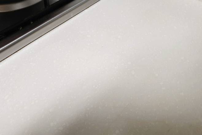 일단 그냥 팬에 구울 때는 사방팔방 기름 튐이 많았는데 종이 포일 깔고 구우면 기름 튐이 적어요. 위 사진 보시면 아시겠지만 가스레인지 주변에 기름 튐이 적어 깔끔합니다.