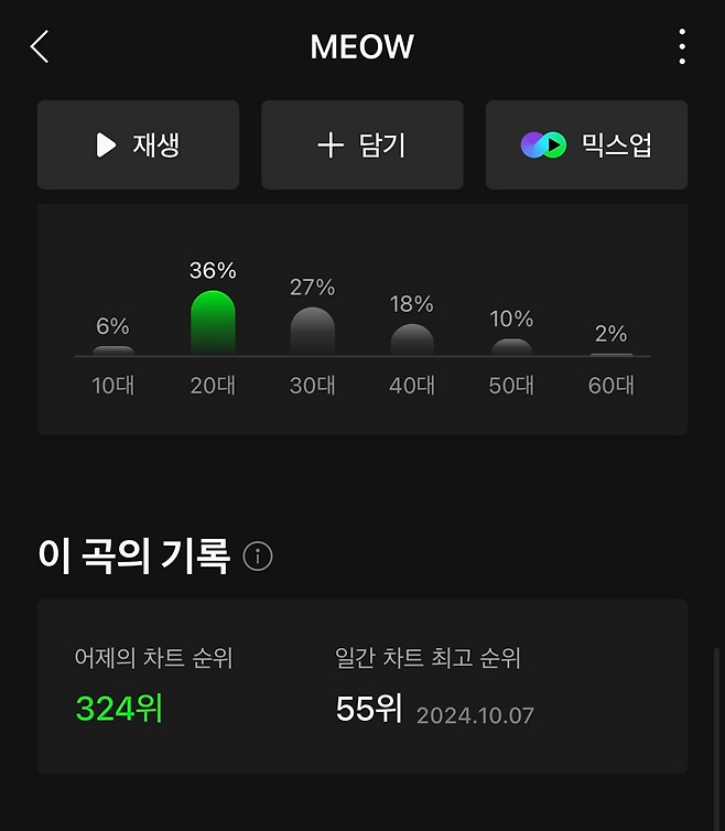 피크였던 데뷔곡 미야오 곡 일간순위는 넘어버림