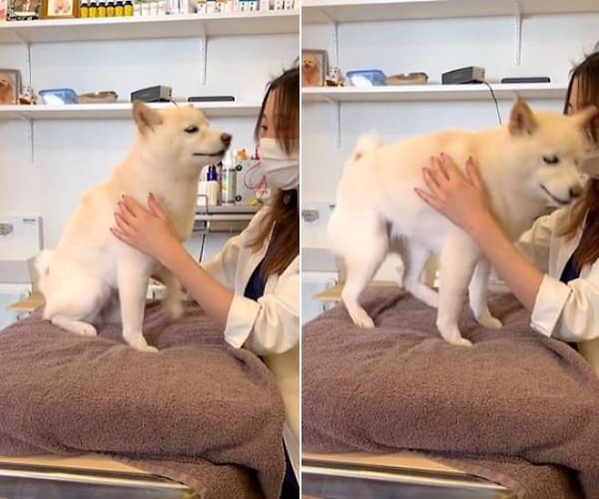 이날 강아지는 집사와 함께 동물병원을 방문했다고 합니다. 어느덧 강아지는 진찰 차례가 찾아왔고 당연하다는 듯이 진찰대에 앉아 수의사 선생님을 응시했죠.